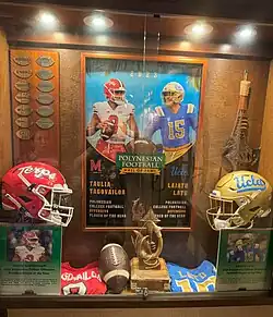 Polynesian Football Hall of Fame display for 2023 college football co-recipients Taulia Tagovailoa and Laiatu Latu