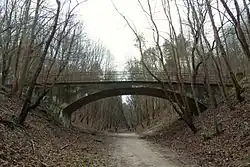 The PKM runs on two lines officially designated by PKP Polskie Linie Kolejowe as PKP rail lines 248 and 253. PKP rail line 248 was constructed on the right-of-way of a pre-war line from Stara Piła to Wrzeszcz, which was blown up by the retreating Germans near the end of World War II. At its northern end, the line connects with the existing, non-electrified line 253 to Gdynia, via Gdańsk Osowa and Wielki Kack. An advantage of re-opening this connection is that no buildings have had to be torn down, as the right-of-way of the old line is undisturbed and has not been encroached on anywhere.[2]
