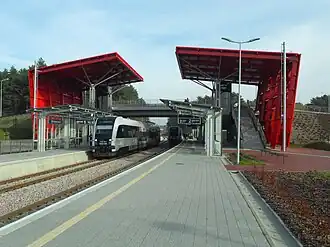 The Pomeranian Metropolitan Railway (Polish: Pomorska Kolej Metropolitalna, PKM) is a railway in the Tricity area connecting Gdańsk Lech Wałęsa Airport with Wrzeszcz. The line was officially opened by the Prime minister of Poland Ewa Kopacz on 30 August 2015[1] and regular train services started on 1 September 2015. The line is owned by the Pomeranian Voivodeship and managed by the Pomorska Kolej Metropolitalna, a company wholly owned by the voivodeship. Services on the line are provided by Polregio.