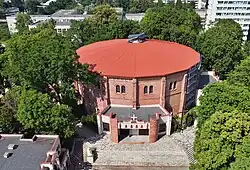 In 1865, the Pomorzany Cemetery was founded between the current Powstańców Wielkopolskich Avenue and Grudziądzka Street, to serve as the burial site for the local population. It had an area of around 11 ha.[2][4] In 1879, a hospital complex was opened to the south of the cemetery, at the current 72 Powstańców Wielkopolskich Avenue, now known as the University Teaching Hospital no. 2 of the Pomeranian Medical University.[5][6] The burials at the cemetery were ceased in 1928, and in 1938, its southern half was cleared to make space for the extension of the hospital, with the graves being moved to the Central Cemetery. After the Second World War, its remaining portion was also cleared out, and turned into the General Dowbór-Muśnicki Pomorzany Park, with an area of 5.5 ha.[2][4]