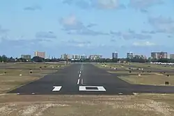 Pompano Beach Airport was constructed during World War II as a Naval outlying landing field (NOLF) for Naval Air Station Fort Lauderdale, what is now the Fort Lauderdale-Hollywood International Airport. On August 29, 1947, the City of Pompano Beach obtained the Airport under the Surplus Property Act of 1944 and renamed it Pompano Beach Air Park, due to its intent to limit the airport's usage to general aviation. For the same reason, the City shortened Runway 15–33 from its original length of 5,000 feet (1,500 m) to a length of 4,418 feet (1,347 m) in 1971, This has since been extended to its current 4,918ft length as of 2025.