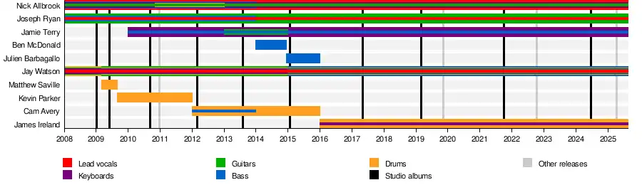 • Jamie Terry – keys, synth, organ, bass, occasional guitar, production (2010–present)