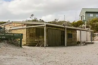 The south part of the bay is reported as providing anchorage, however the holding ground is considered to be poor due to the bottom consisting of ‘smooth limestone with a thin cover of sand.’ No infrastructure exists for maritime use apart from access to the beach from the national park’s road network which allows the launching and retrieval of small boats.[5][7] The sole settlement in Pondalowie Bay is a group of dwellings described as a ‘Fishermans village’. Immediately beyond the shores of the bay is a camping ground provided as part of the national park’s infrastructure.[8][9]