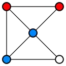 The board consists of 5 vertices and 7 edges. Each player has two pieces. Players take turns to move. At each turn, the player moves one of their two pieces into the adjacent vacant vertex. If a player can't move, they lose.