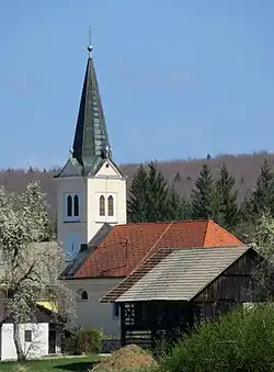 The local church is dedicated to Saint Florian and belongs to the Parish of Dobrepolje–Videm. It is a Gothic building that was extensively rebuilt in the 18th century.[5]