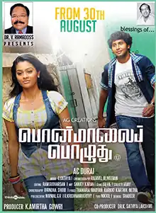 Ponmaalai Pozhudhu (transl. Golden Evening Hours) is a 2013 Indian Tamil-language film directed by A. C. Durai and produced by Amritha Gowri. Inspired from a real-life incident, the film stars Aadhav Kannadasan and Gayathrie, with Kishore, Aruldoss and Anupama Kumar in supporting roles. The music was composed by C. Sathya,[1] with cinematography by Rajavel Olhiveeran[2] and editing by Ramsudharan. The film was released on 30 August 2013.
