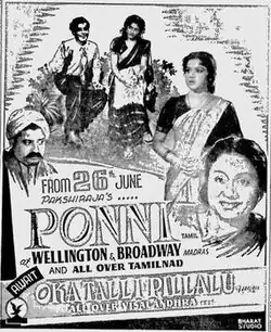 Ponni is a 1953 Indian Tamil-language film directed by A. S. A. Sami and C. S. Rao, starring Sriram, Lalitha and Padmini. The Telugu version Oka Talli Pillalu was released in the same year.[1][2]