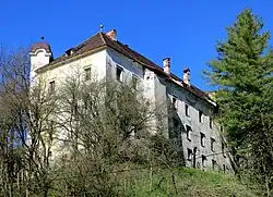 Knežija Castle (German: Graf(f)enweg)[2] formerly stood on the hill above Mačkovina.[4] It was first mentioned in written sources in 1469.[8]
