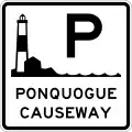 In the need for these new parkways, Moses and Andrews also proposed two parkway spurs across the Great South Bay and Shinnecock Bay. These parkway spurs, which would use bascule lift bridges, were to connect to the William Floyd Parkway (current-day CR 46) and Ponquogue Avenue (current-day CR 32), which would cross their respective bodies of water and terminate at a junction with Montauk Highway (NY 27A) in Shirley and Hampton Bays. Deemed locally as the Ponquogue Parkway,[2] but also considered an extension of the Ocean Parkway, the new 47.5 miles (76.4 km) parkway proposal would also bring forth three new parks into the New York State Parks system: Smith Point (replacing the current-day Smith Point County Park), Point O'Woods (in the namesake community) and Quogue. Fire Island State Park would also be rebuilt.[1] Within that year, Andrews sliced over $6 million off of the project, eliminating a bridge over Fire Island Inlet along with the state parks at Quogue and Point O'Woods. The other 1938 change would be a new turnoff in Hampton Bays rather than construction out to Southampton and NY 27A. This money would be paid for by Suffolk Count and by a grant from the Public Works Administration.[3]