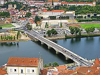 The Ponte de Santa Clara (Portuguese for Santa Clara Bridge) is a t-section and haunched girder bridge completed and opened on 30 October 1954, crossing the Mondego River leading to the town square of Coimbra. It was inaugurated on the same date it opened by prime minister António de Oliveira Salazar for a total cost of 15,000 contos (€ 75,000).