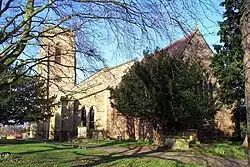In the centre of the village sits St George's Church of England parish church, the origins of which can be traced to about 1250 AD but due to the site's circular graveyard shape may indicate a much more ancient site of Anglo Saxon or even Celtic origin. The church itself however was largely restored in the 19th century, following the collapse of the mediaeval tower between 1820 and 1825.[23]