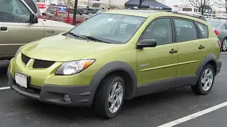 The Pontiac Vibe is a compact car that was sold by Pontiac from 2002 to 2010. It was jointly developed by General Motors along with Toyota, which manufactured the mechanically similar Toyota Matrix. Manufactured by the Toyota-GM joint venture NUMMI in Fremont, California, the Vibe succeeded the Chevrolet Prizm in production at NUMMI and like the Prizm, it was derived from the Toyota Corolla, making it the last of the GM and Toyota developed S-body cars.