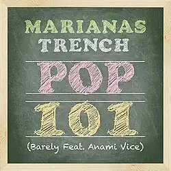 "Pop 101" is a song by Canadian pop rock band Marianas Trench, featuring hip hop artist Anami Vice. Written and produced by lead singer Josh Ramsay, it was released on July 29, 2014, through 604 Records, Cherrytree Records, and Interscope Records.[1][2] Originally announced as the lead single off the band's forthcoming fourth studio album, Astoria (2015), the song was later scrapped from the album and serves only as a buzz single; it is also included on their 2015 extended play, Something Old / Something New.[3] "Pop 101" entered the Canadian Hot 100 at No. 27, and was certified Platinum by Music Canada in March 2023.[4][5]
