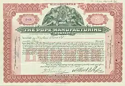 Share of the Pope Manufacturing Company, issued in 1909