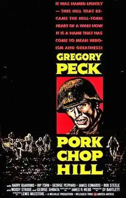 Pork Chop Hill is a 1959 American Korean War film starring Gregory Peck, Woody Strode, Rip Torn, and George Peppard. The film, which was the final war film directed by Lewis Milestone, is based upon the 1956 book by U.S. military historian Brigadier General S. L. A. Marshall. It depicts the first fierce Battle of Pork Chop Hill between the U.S. Army's 7th Infantry Division and Chinese and North Korean forces in April 1953.