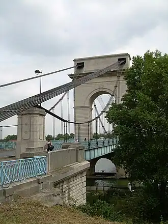 The Port à l'Anglais Bridge (French: pont du Port à l’Anglais) is a cable-stayed suspension bridge that spans the Seine river between the French communes Alfortville and Vitry-sur-Seine. It carries two lanes of automobile traffic and has pedestrian walkways on each side.
