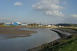 Combwich Pill, a small creek near the mouth of the river, had been used for shipping since the 14th century. From the 1830s, with the development of the brick and tile industry in the Combwich area, the wharf was used by two local brickyards to import coal and export tiles to Wales and parts of Gloucestershire.[44] This traffic ceased in the 1930s; and in the late 1950s the wharf was taken over and upgraded by the Central Electricity Generating Board (CEGB) to bring in heavy materials for the Hinkley Point A and later Hinkley Point B nuclear power stations.[44] Construction of Hinkley Point A nuclear power station was ordered in 1957, with a scheduled completion date of 1960, but it was not completed until 1965.[45] This was followed in 1967 by the construction of Hinkley Point B nuclear power station, which began operation in 1976.[46]