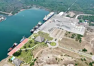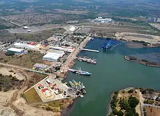 The Port Chiapas (Spanish: Puerto Chiapas) or Puerto Madero[6] is a port in Puerto de San Benito in the Tapachula municipality of the Soconusco region in the southern portion of the Mexican state of Chiapas. The port entrance lies about 13 kilometres (8.1 mi) northwest of the mouth of the Suchiate River which is the international boundary between Mexico and Guatemala. Puerto de San Benito is connected by Highway 225 to Tapachula International Airport and the city of Tapachula. Since its opening in 1975 the port has been a small fishing and agricultural transport center.[5] Upgrades carried out in 2005 and since by the government have added facilities for cruise ships and more heavy cargo.[7] Governor Pablo Salazar Mendiguchía had put interest in the original rustic and old port, and later Governor Juan Sabines Guerrero has ordered development of the true port in the hopes it will attract business to Chiapas, the poorest state in Mexico.[5] Ships of the Holland America Line, Regent Seven Seas Cruises, Norwegian Cruise Line, Oceania Cruises and Princess Cruise Line stop at Port Chiapas.[8][9]