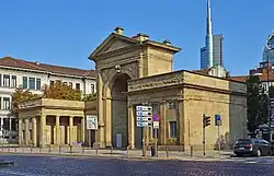 Porta Nuova (pronounced [ˈpɔrta ˈnwɔːva]; literally "New Gate"; Milanese: Pòrta Noeuva [ˈpɔrta ˈnøːʋa]) is one of the main business districts of Milan, Italy in terms of economy, and part of the Zone 2 administrative division. Named after the well-preserved Neoclassic gate built in 1810 on this site, it is now one of Italy's most high-tech and international districts, containing the country's tallest skyscraper: the Unicredit Tower.