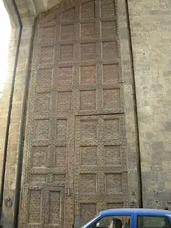 The 13th century walls and gates of the city were erected with the designs of various builders; among the main contributors were Arnolfo di Cambio, with contributions by Orcagna, Giotto and others. A plaque on the external wall claims the gate was erected in 1327. Originally and as demonstrated on the 1584 Map by Stefano Buonsignori the gate had a lower outer wall with a small courtyard dominated by the larger gate we see today;[1] in this, the gate resembled the Porta Romana of Siena. The gate had a large central entrance for horse-drawn carriages, and smaller lateral doors for pedestrian entry. The door retains its original massive, iron-clad doors. The outer arch has a weather-worn 13th-century fresco, depicting the enthroned Virgin and saints.