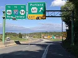 Pennsylvania Route 611 is the only numbered highway serving Portland. It follows Delaware Drive along a north-south alignment through the heart of the borough. The Portland–Columbia Toll Bridge crosses the Delaware River in Portland, connecting the borough to U.S. Route 46, New Jersey Route 94 and Interstate 80 in New Jersey.