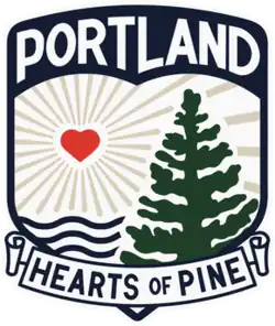 The club's Hearts of Pine nickname and crest were unveiled on April 27, 2024.[23][24] The crest features a pine tree, waves, and a heart inside of the starburst featured on the Seal of Maine.[25] The font for "Portland" was inspired by the Portland Company building on Portland's waterfront, and the scroll bearing "Hearts of Pine" is a nod to Maine's literary tradition.[26][27]
