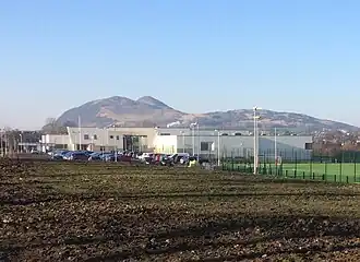 The old Portobello High School building on Duddingston Road, Edinburgh taken from Arthur's Seat.