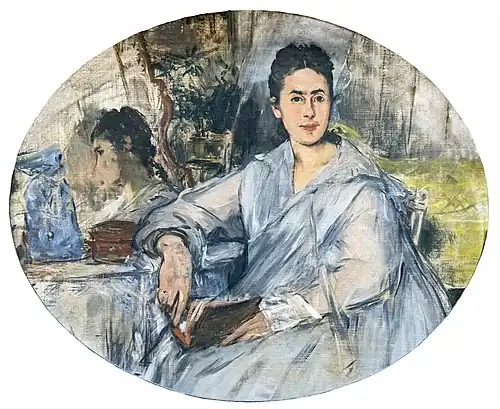 It is one of Manet's five portraits of Marguerite de Conflans, the earliest dating to 1873.[2] He asked her to sit again and again, meeting her at receptions organised by his wife, to which de Conflans came with her mother.[3]