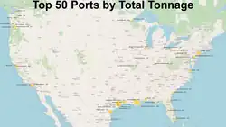 - ^ "Waterborne tonnage for principal U.S. ports and all 50 states and U.S. territories; Waterborne tonnages for domestic, foreign, imports, exports and intra-state waterborne traffic". U.S. Army Corps of Engineers. 2020. Retrieved March 14, 2023.