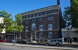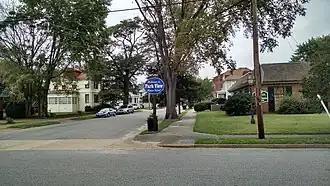 The Key Road School, the first school for Black children in the area, was founded in 1921 by Julius Rosenwald and Booker T. Washington.[18] The school was open to students from first through seventh grade. In 1926, the school moved to a new building, with funding coming from the Black community, the Rosenwald Fund, and Norfolk County.[19] The school closed in 1965.[19] After the school ceased operations, the I.C. Norcom School Boosters briefly used the building as its headquarters.[19] In 1971, the Olympian Sports Club, which sponsors Black youth athletics, began using the building.[18] In 2017, the city sought to condem and raze the former school building, but the African-American Historic Society of Portsmouth fought for the building to receive historic designation, and the building was preserved.[19] It is marked with a Virginia Historical Highway Marker.[19]