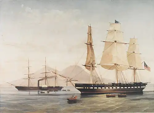 Congress (1841) (right) and Susquehanna at Naples, painted in 1857, by Tommaso de Simone