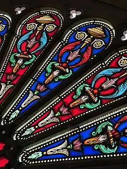 There are stained glass windows in various places, the work of master glaziers from Tours, Julien-Léopold Lobin (1814-1864) and his son Lucien-Léopold Lobin (1837-1892).