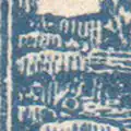 Forged 3h (blue) values are known two contain two variations depending on plate position. Odd numbered positions in the forged sheets contain a small blot northwest of the letter P and a dot below rk.[3] Even numbered positions contain a dot on the left side of the center of the right numeral 3, dots below e, and often above s.[3]