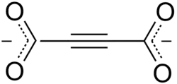 Acetylenedicarboxylate (often abbreviated as ADC or adc) is a divalent anion with formula C4O2−4 or [O2C−C≡C−CO2]2−; or any salt or ester thereof. The anion can be derived from acetylenedicarboxylic acid by the loss of two protons. It is one of several oxocarbon anions which, like carbonate CO2−3 and oxalate C2O2−4, consist solely of carbon and oxygen. The ADC anion can aсt as a ligand in organometallic complexes, such as the blue polymeric complex with copper(II) and 2,2′-bipyridine, [Cu2+[C4O4]2−·(C5H4N)2]n.[9][10] Thallium(I) acetylenedicarboxylate (Tl2C4O4) decomposes at 195 °C, leaving a residue of pyrophoric thallium powder.[11]