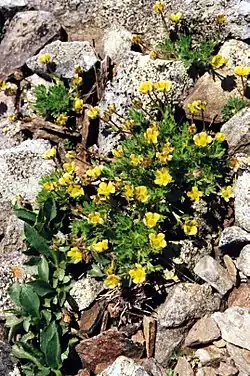 Potentilla robbinsiana, the dwarf mountain cinquefoil[1] or Robbins' cinquefoil, is a small yellow-flowered perennial growing exclusively above the tree line in the White Mountains of New Hampshire. It is nearly stemless and measures two to four centimeters in diameter.[2][3]