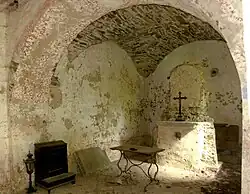 The local church, now abandoned, is dedicated to Saint George and belongs to the Parish of Senožeče.[3] The church was built in 1526 and remodeled in 1655. It has a rectangular groin-vaulted chancel, a wide nave with a stuccoed ceiling, and a squat belltower over the entrance.[4]