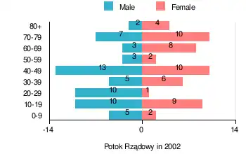 According to the 2002 Poland census, there were 110 people residing in Potok Rządowy village, of whom 52.7% were male and 47.3% were female. In the village, the population was spread out, with 20% under the age of 18, 32.7% from 18 to 44, 18.2% from 45 to 64, and 29.1% who were 65 years of age or older.[1]