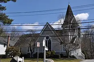 Pound Ridge Historic District is a national historic district located at Pound Ridge, Westchester County, New York. The district contains 46 contributing buildings and encompasses almost all of the hamlet. The majority of the buildings in the district date between 1780 and 1852. The earliest building was built in 1758 and is the Capt. Joseph Lockwood House (only four families have lived in it since Joseph Lockwood build it). Notable buildings include: Methodist Episcopal (Community) Church (1833), Patterson Memorial Presbyterian Church (conant Hall, 1893), Presbyterian Lecture Hall (Pound Ridge Town Hall, 1852), Parker Store (1906), Pound Ridge Village School (Hiram Halle Memorial Library, 1851), Aaron Wood's Mill (ca. 1800), Partridge Thatcher House (1788), Maj. Ebenezer Lockwood House (ca. 1780), Alsop Hunt Lockwood House (1840), and Solomon Lockwood House (ca. 1800).[2]