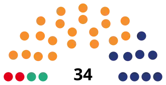 The Poznań City Council is the governing body of the city of Poznań in Poland. The council has 34 elected members[2] elected every five years in an election by city voters through a secret ballot. The election of City Council and the local head of government,[3] which takes place at the same time, is based on legislation introduced on 20 June 2002.