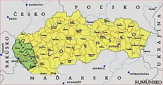 - ^ In 1900: present-day Lamač, Dúbravka, Záhorská Bystrica – more than 93% of the population, present-day Vajnory (93%) and Rača (75%).[1]