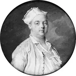 Born Pierre-Louis Dubus to an impoverished family in Paris, he was originally intended for the clergy.[1] While playing with a mediocre troop of actors in provincial France, Préville's budding talents were spotted in the town of Rouen by Jean Monnet, who engaged him to perform with the Opéra-Comique in Paris in 1743.[3] Later Préville returned to the provinces and was the manager of the Grand Théâtre in Lyon.[2]
