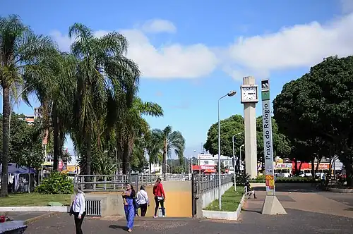 Praça do Relógio (Station code: REL) is a Federal District Metro station operating on the Green line. It was opened on 31 March 2001 as the western terminus of the inaugural section of the line, from Central to Praça do Relógio. In November 2006, the line was extended to Ceilândia Sul as shuttle service, and on 23 April 2007, full service was opened. It is located between Estrada Parque and Centro Metropolitano.[1] The station is named after Taguatinga's Praça do Relógio.