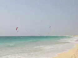 Praia de Santa Maria is a beach on the south coast of the island of Sal, Cape Verde. It stretches from the city center of Santa Maria in the east to the Ponta do Sinó (the island's southernmost point) in the southwest. It is about 2 km long. Along with Praia da Ponta Preta, it is the most popular beach on the city and island.