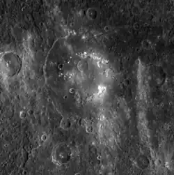 1. ^ Chapman, C. R., Baker, D. M. H., Barnouin, O. S., Fassett, C. I., Marchie, S., Merline, W. J., Ostrach, L. R., Prockter, L. M., and Strom, R. G., 2018. Impact Cratering of Mercury. In Mercury: The View After MESSENGER edited by Sean C. Solomon, Larry R. Nittler, and Brian J. Anderson. Cambridge Planetary Science. Chapter 9.
