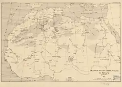 1889 map of trans-Saharan trading routes by French explorer Édouard Blanc