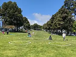 Precita Park in 2020, showing social-distancing circles