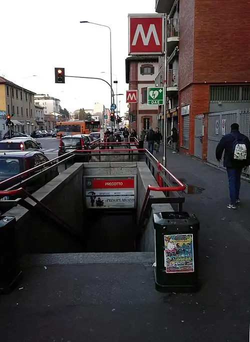Precotto is a station on Line 1 of the Milan Metro in Milan, Italy. It was opened on 1 November 1964 as part of the inaugural section of the Metro, between Sesto Marelli and Lotto.[2]