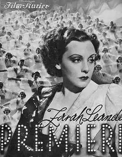 Premiere is a 1937 Austrian musical crime film directed by Géza von Bolváry and starring Zarah Leander, Attila Hörbiger, and Karl Martell. The wealthy backer of a Viennese musical revue is murdered on the first night of the show. It was Leander's first German language role after previously appearing in Swedish films.[1] On the basis of her performance in the film, Leander was signed by the German Major studio UFA after their major rival, Tobis, had decided she had insufficient star appeal.[2] Her next film To New Shores established Leander as the leading star in Germany.