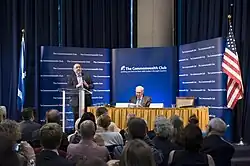 Salmond was highly critical of the UK Government during a speech at Georgetown University in Washington DC, the capital of the United States. He confirmed that the UK Government would be requiring Salmond to cut £500 million in spending from the Scottish Government budget over the next two years. Salmond highlighted during the speech that independence was necessary "if we are to protect our communities and create the stimulus we need to see our economy grow".[31]