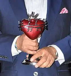 The current award is a heart with musical notes around and a crown at the top representing the heart of Jesus.[3]